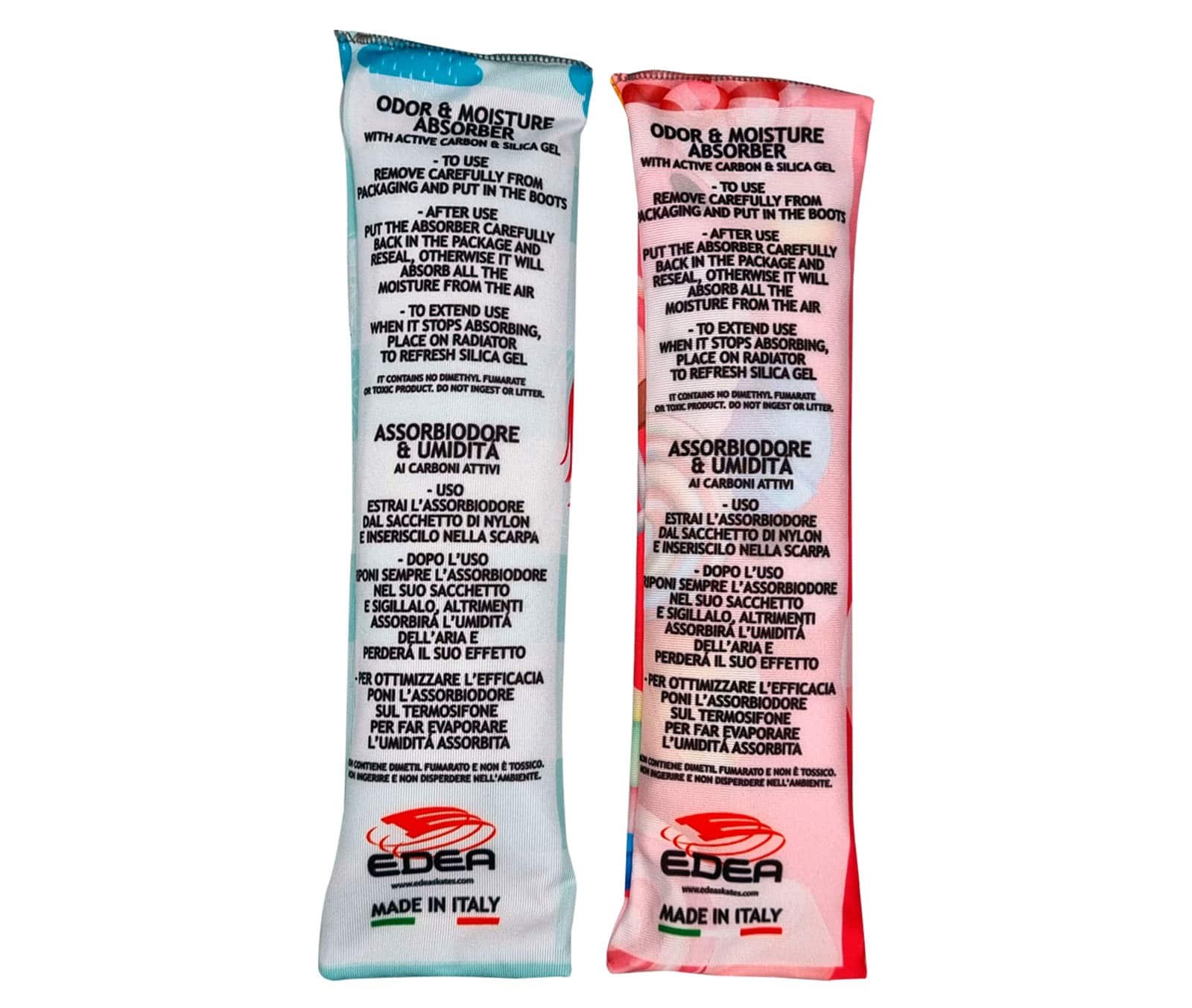 Hver pakke inneholder to absorberende poser fylt med aktivt kull og giftfri silikagel – en trygg og effektiv kombinasjon som holder skøytene i topp stand. De er perfekt tilpasset skøytene og leveres i flotte design